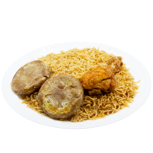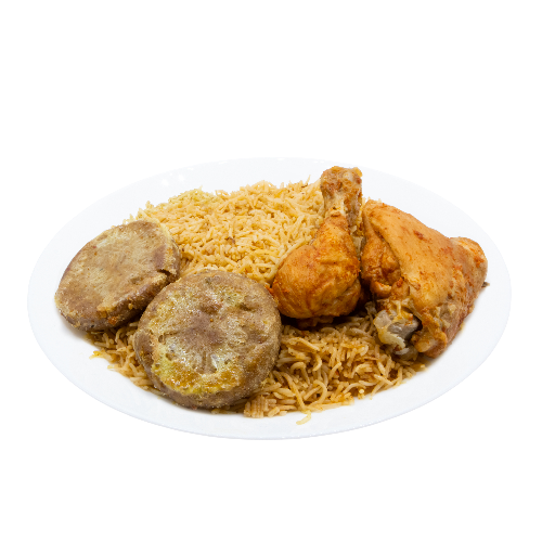 Big portion of tranditional savour pilau served with 2 shami kebab and1 piece chicken