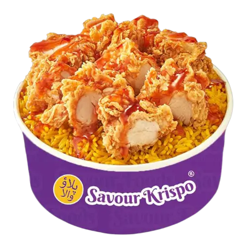 Pilau Rice + Krispy and spicy chicken + Spicy BBQ Sauce + krispo Sauce