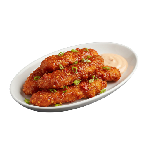 Atomic Chicken Strips, Spicy BBQ Chicken Strips, Honey Sri Racha Chicken Strips, Mango Habanero Chicken Strips